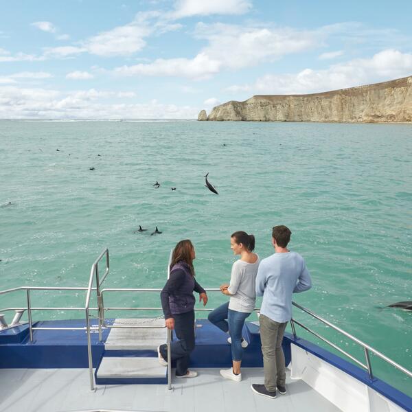 See the world's smallest dolphin in Akaroa with Black Cat Cruises.