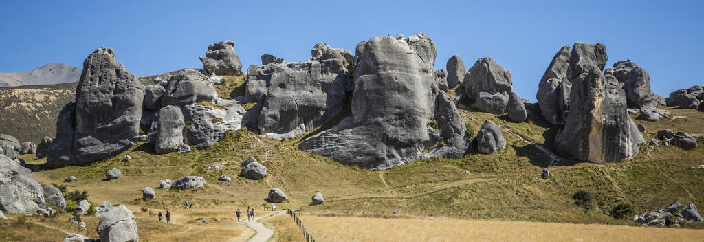 An easy walking track takes you through open pasture to stand beneath these impressive limestone features. From here follow the network of well-worn tracks that weave through the giant stones, giving you access to all sides.