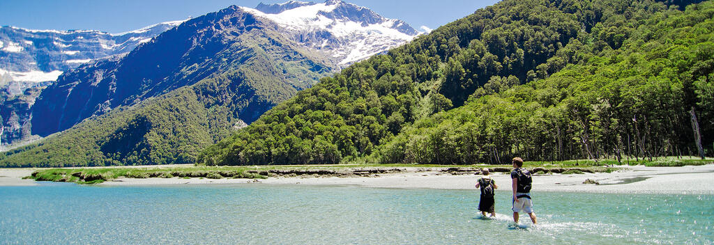 Discover an amazing world of mountains, glaciers, river valleys, alpine lakes and swing bridges on this track in the Mount Aspiring National Park.