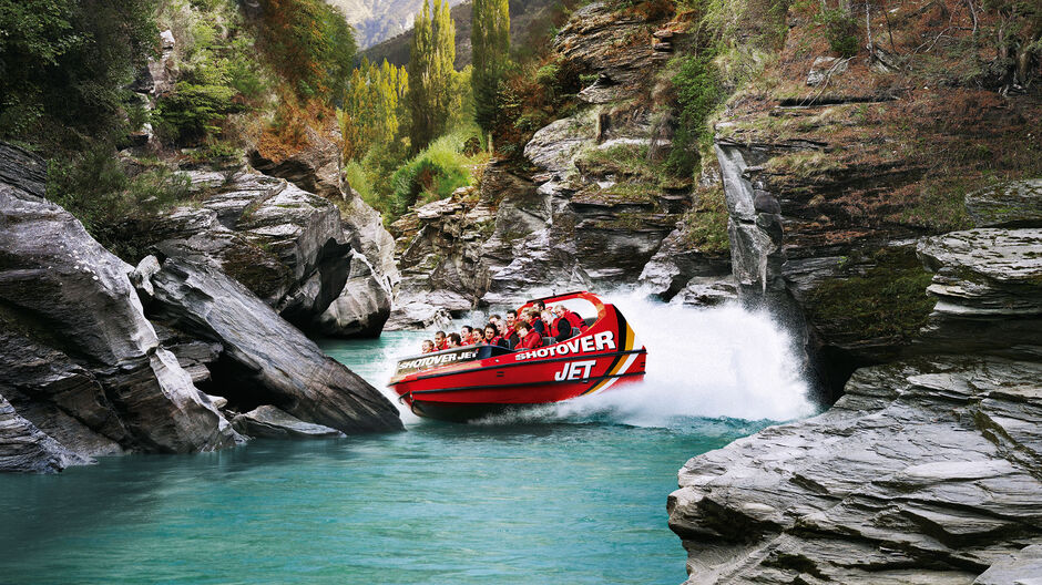 Experience a thrilling ride along the Shotover River in Queenstown.