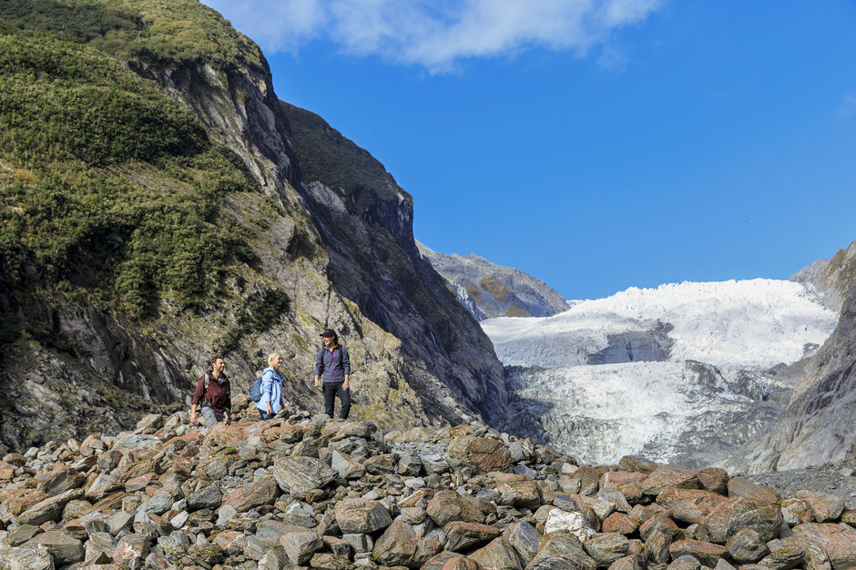 In Hokitika, workshops and galleries display the town's greatest treasure, pounamu (NZ jade). Nearby Arahura River is a well-known source for the stone and artists can be seen carving and polishing it throughout the town. Further south, you will find Franz Josef and Fox Glaciers. These mighty rivers of solid ice are relics of the last ice age and some of the most accessible glaciers in the world. Choose from a wide range of adventure activities (mostly involving glaciers and mountains). Guided hikes, heli-hikes and scenic flights over the glaciers are popular.