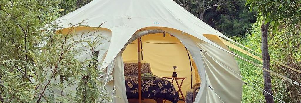 Set amidst lush greenery on Waiheke Island, Fossil Bay Lodge offers a night to remember with their lotus belle glamping tents – outfitted with everything from a queen bed to a luxurious rain shower for a comfortable night’s stay.