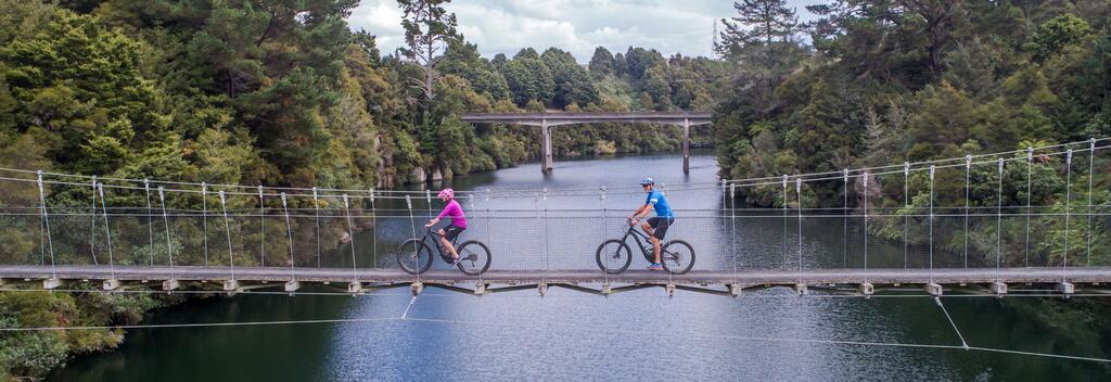 Traversing the rural heartland in the centre of the North Island, the Waikato River Trails(opens in new window) wind through forests, wetlands and recreation reserves. Among many memorable sights are volcanic outcrops, a gorge, hydropower stations and suspension bridges.
