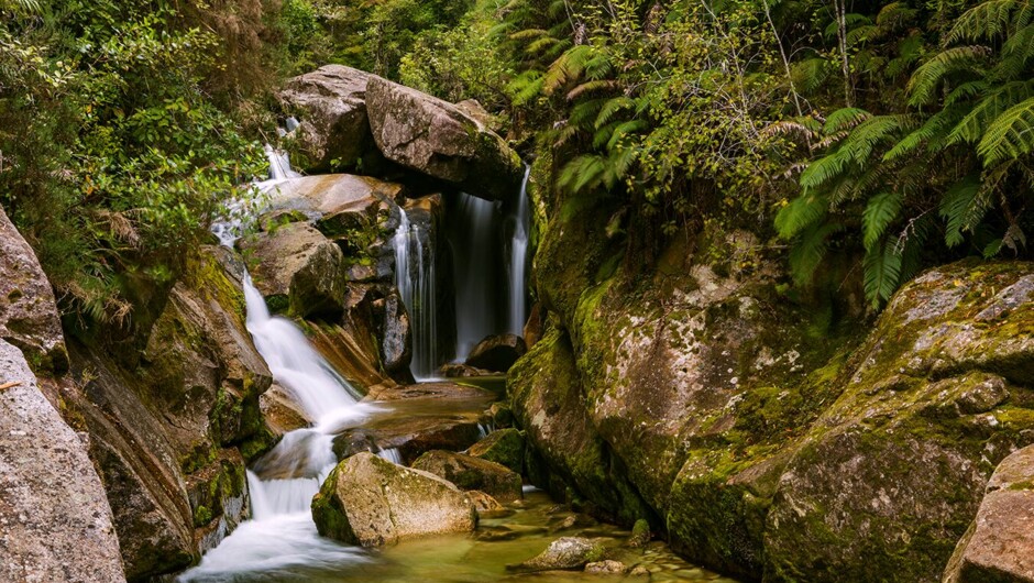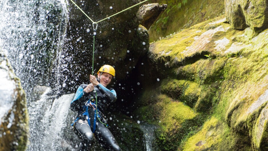 From Marahau you will join us on an exhilarating water taxi ride along the Abel Tasman National Park coastline into Anchorage. From the golden sand beach we walk up to the canyon in about 1.5 hours, whilst the guides share stories about the flora and fauna and the history of the area. Along the way you will also be able to enjoy stunning views. Then it is time to get changed into our superhero outfits (read: wetsuits, climbing harnesses, and helmets) and jump into the canyon. On this action-packed canyoning trip you will access a place that normally stays hidden from view. Trips are guided by professional guides and all your canyoning equipment is supplied. Just bring a swimsuit, a towel, a pair of closed toed shoes and a bit of attitude.