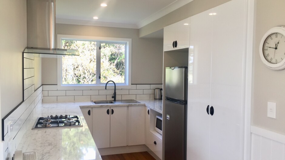 A fully self-contained renovated house nestled in central Waitangi, with spectacular views overlooking Petrie Bay. Two bedrooms, a modern open plan kitchen and living area, bathroom, appliances and deck. A short 2 minute walk to all amenities.