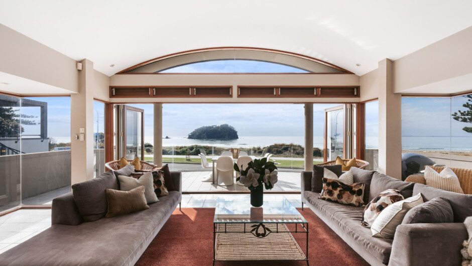 Welcome to your ultimate Mount Maunganui getaway. This spacious, character-filled beach house is perched on Marine Parade -just steps from the sand, with uninterrupted views of the ocean and everything you need for a relaxed, elevated stay.