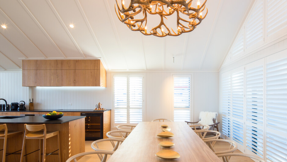 This modern and spacious Scandinavian style will make you feel immediately relaxed as you absorb the views of the surrounding mountains and Lake Wakatipu. In privacy you can enjoy the proximity to Queenstown. The villa offers comfortable spaces to spread out and unwind. The kitchen is a perfect gathering spot for friends and family. It’s the ideal space to have one of our chef’s come and cook for you in-house one evening. There are four bedrooms - the master has an ensuite and the other three bedrooms share a beautiful large bathroom and powder room. The private deck is fabulous for relaxing and soaking in the views of the Remarkables mountain range after a busy day exploring Queenstown.