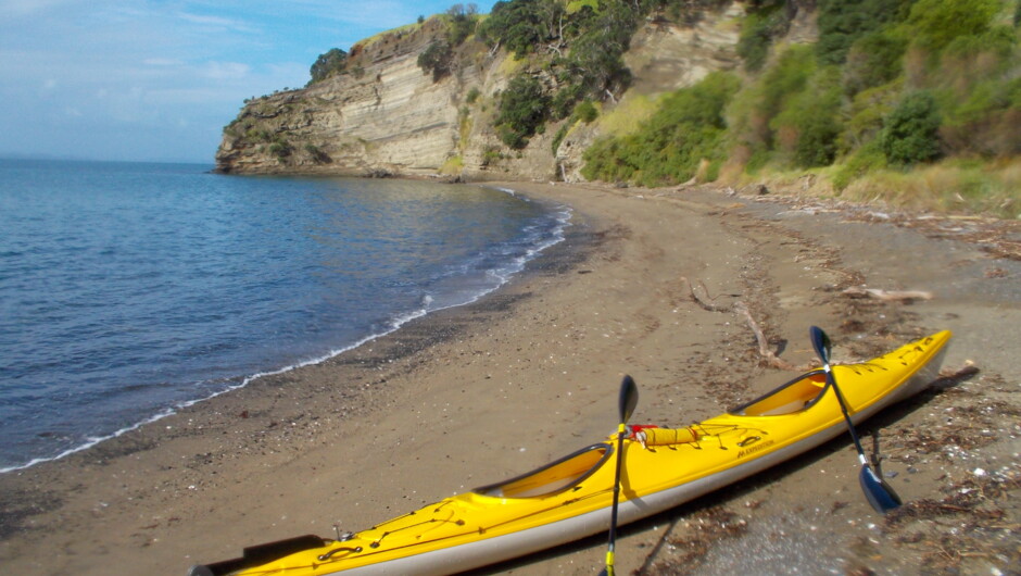 At the peak, you will enjoy views of east Auckland, islands of the Hauraki Gulf, and historic archaeological gems. The paddle home passes the sheltered cliffs of Gentleman’s Bay.