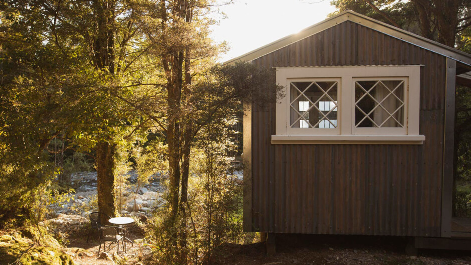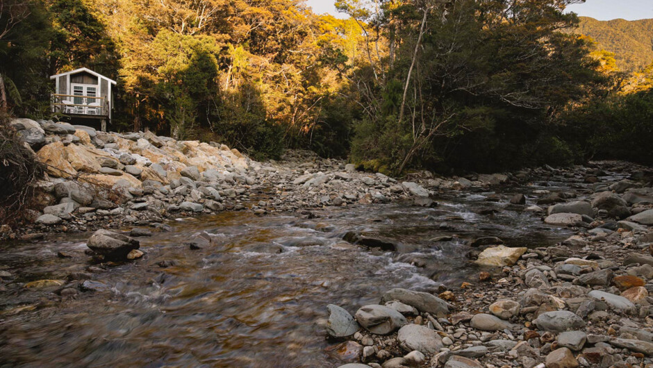 Quartz Clearing is 2.5 hours drive from Nelson and 30 minutes from Collingwood in the stunning Golden Bay region of the South Island. Set in a secluded spot next to a rocky-bottomed stream, the campsite is made up of three unique little buildings.