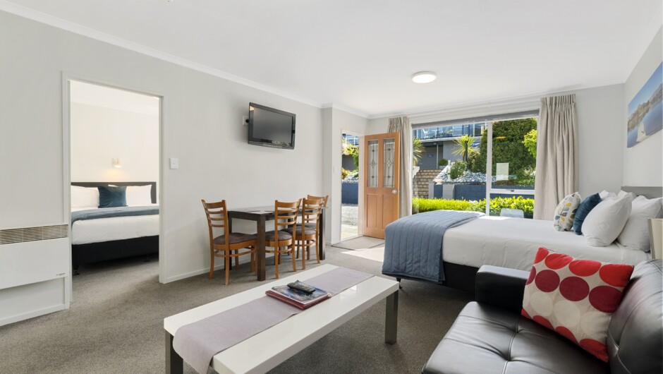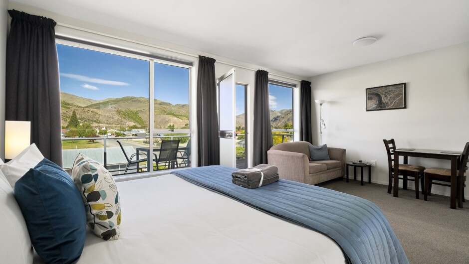 Our units are spacious and all fully self-contained with heat pumps/aircon. Upstairs units enjoy morning sun, views of the surrounding hills and from the balcony get a glimpse of Lake Dunstan. Downstairs units bask in afternoon sun. The 2 one-bedroom units have plenty of space for family or friends staying together. Our cute, compact Cabana unit, although smaller than studios, is still fully self-contained and perfect for a short stay. 3 minutes walk to Old Cromwell and cafes by the lake. Each unit has a fully equipped kitchen, large LCD TV - the family units have 2 TVs, superking or queen beds. Our guests enjoy free WIFI. BBQ area to enjoy with family and friends.