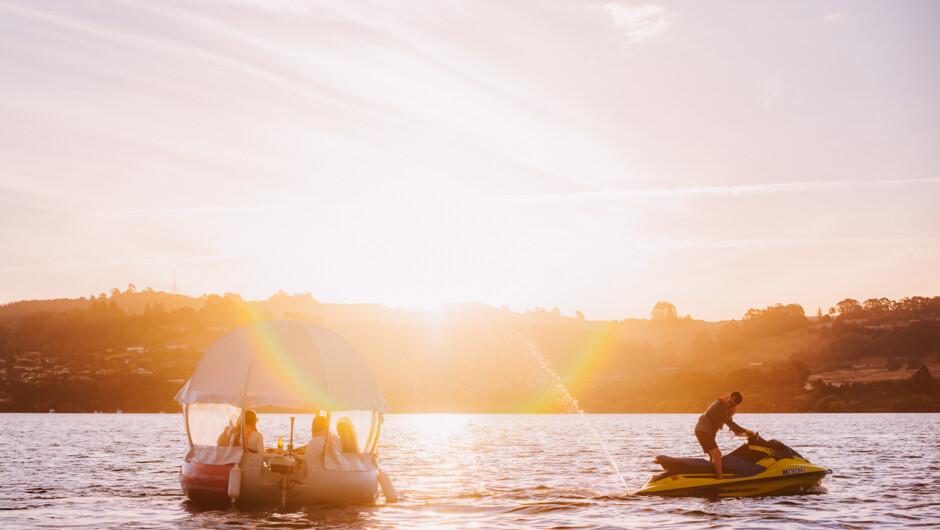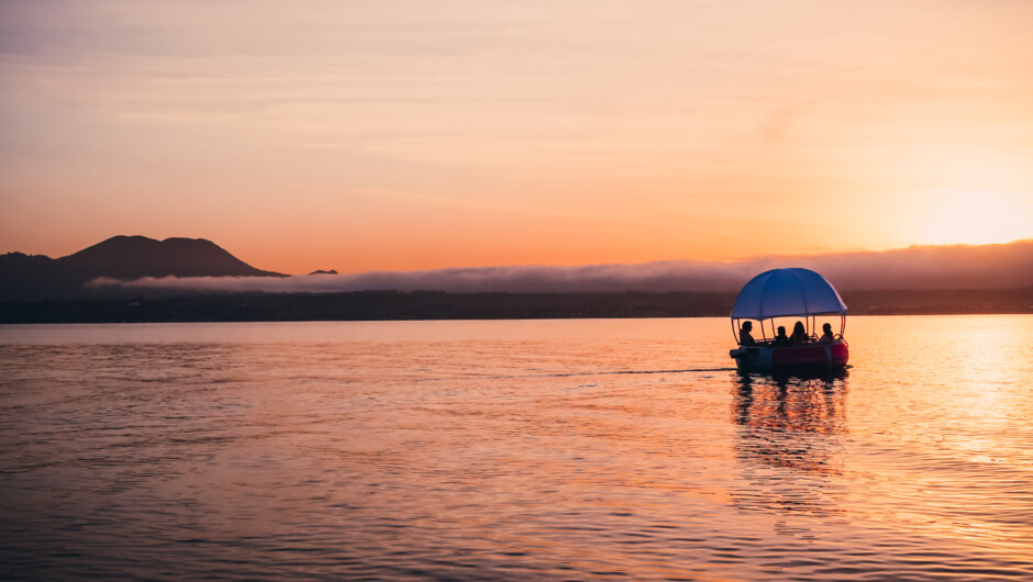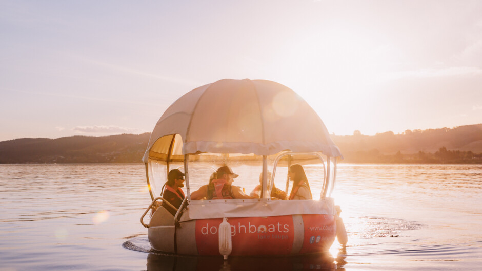 We're New Zealand's first and only doughnut boats, providing you with an iconic boating experience on beautiful Lake Taupo. Our boats are doughnut-shaped so you can sit around a big table with your family, significant other or a group of friends. Grab a meal to go and bring it on board with some drinks to enjoy during your cruise. Connect your phone to our bluetooth speaker and set the mood as you enjoy the views or jump into the lake. We are located at Berth 21 at the Taupo Marina at 59 Redoubt St. We are within walking distance from the Taupo town centre.