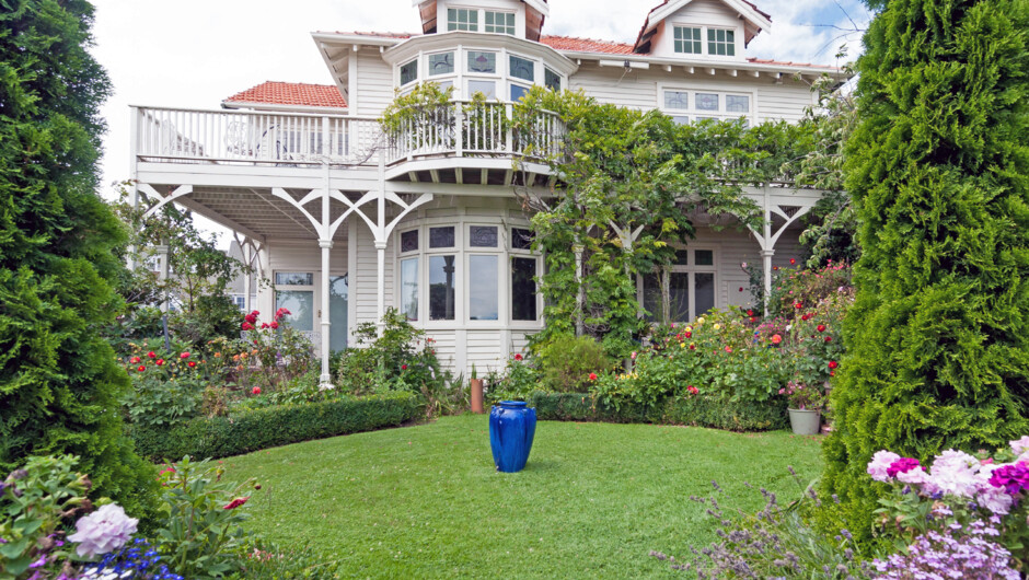 Dyers House was built in 1906 and was one of the first houses on the hill. It offers luxury accommodation, yet retains its original charm and personality. Overlooking the city and Canterbury Plains, Dyers House has spectacular panoramic views from the Southern Alps to the sea. The three spacious bedrooms also offer views of the Alps and city and have queen size beds and ensuite bathrooms. Double glazing, under floor heating and full insulation ensure your comfort. Bedroom facilities include bathrobes, toiletries, hairdryer, iron, tea, coffee and snacks, as well as TV and DVD. Other facilities include a library and Broadband WIFI.