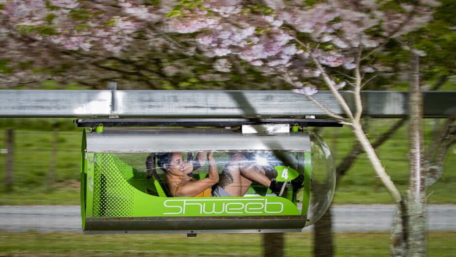 Get ready to rock your ride with the Shweeb Racer – the only pedal-powered monorail track in the world. Feel the exhilaration.
