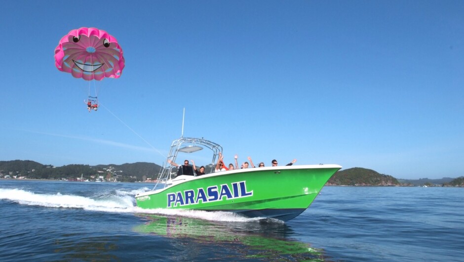 Flying Kiwi Parasail is New Zealand's highest Parasail. No experience required as you are gently lifted from the back deck of our purpose built Parasail boat. Sit back, relax and absorb the amazing views over the beautiful Bay of Islands, Northland. We offer single, tandem and triple flights. No physical restrictions. All our skippers and crew goes through extensive Parasail specific training and are extremely fun and friendly. We have a 100% safety record and worked alongside Maritime NZ to setup safety guidelines for the Parasailing industry. Fully Maritime Operators Safety System (MOSS) qualified. We operate all year around, weather permitting.