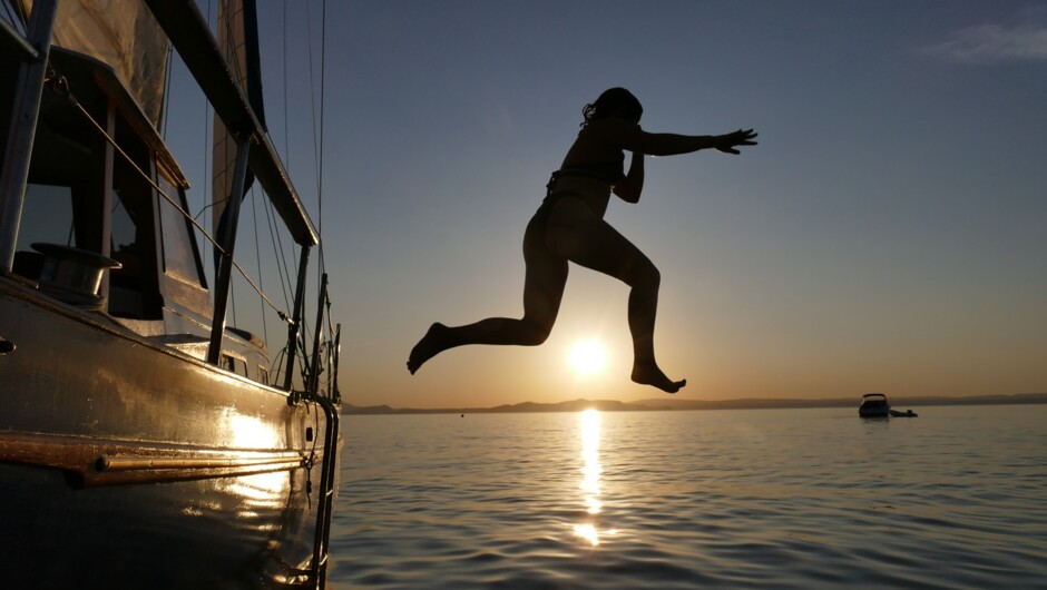 Come on board and experience the beauty of a scenic sailing tour to the Māori Rock Carvings, one of the most extraordinary contemporary carvings in the world. Only viewable from the water, the likeness of Ngātoroirangi towers 14-metres above Lake Taupō. Escape from hectic life for a while and enjoy the breathtaking views around. Listen to our experienced skippers and learn about the history of the lake. Give the crew a hand hoisting the sails and take a turn on the wheel or just snuggle under some blankets and enjoy the wide selection of drinks. Take a dip and swim in the crystal-clear waters of the largest freshwater lake in Australasia. We offer the longest swim stop out of any company on the lake (weather dependent).