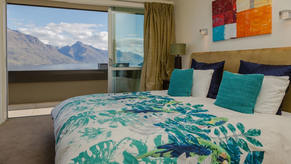 Situated on prestigious Queenstown Hill, Lake View Villa boasts incredible panoramic views of Lake Wakatipu, the Remarkables mountain range, Cecil Peak, Walter Peak and the Skyline gondola. Key features: Sleeps 6; 3 bedrooms and 2.5 bathrooms. All bedrooms have TVs with SKY (cable channels). All bedrooms have access to the balcony or patio. Master bedroom has a private ensuite with spa bath. Two bedrooms have stunning lake and mountain views. Stylish open plan living with a cosy gas fireplace, board games, books, DVDs and MySKY TV. Spacious entertainers’ deck with stunning views, outdoor dining table and BBQ. Practicalities include: Fully-equipped kitchen, laundry, double garage, free WIFI and local calls.