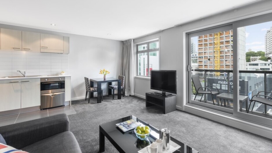 The brand new hotel rooms offer a chic finish, and all deluxe hotel rooms have a private balcony. All apartments come with more space, fully equipped kitchen, full laundry facilities, living area, and most have a balcony where views of the Auckland cityscape can be enjoyed.
