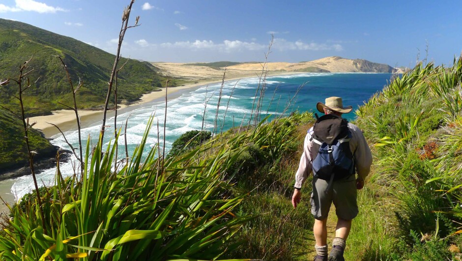 The Northland is beautiful and it feels a long way from anywhere. Long white beaches stretch between ancient volcanic headlands, remote dune-scapes meld into sub-tropical forests, warm evenings yield to starry nights. There is plenty of time for swimming in secret coves of turquoise warm water, brilliant short walks as well as one big day hike. Two fabulous lodges will act as the base from which to explore this magical area. Unpack your bag and feel like you are on holiday as you stay two nights at each lodge. Return after a good day hiking and unwind on the veranda with a glass of wine.