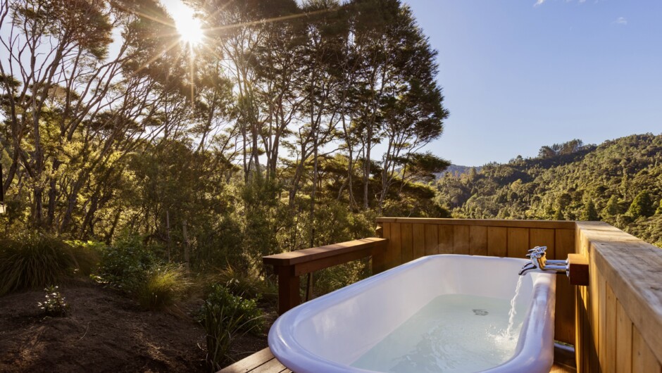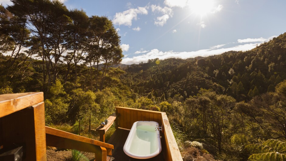 Old Coach Cabin is located 10 minutes from Whitianga in the Coromandel. It's a scenic 2-hour and 30-minute drive from both Tauranga or Auckland. The interior, crafted from macrocarpa wood, exudes a cosy warmth. Large windows flood the space with natural light, showcasing the stunning landscape. A spacious living area and a separate bedroom with a picturesque view open onto a wraparound deck. Soak in luxury under a blanket of stars in the clawfoot cast iron bath – the perfect place to switch off and reconnect with nature.