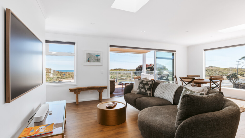 The master bedroom is upstairs with its own ensuite and ocean views, providing a peaceful escape. The other two bedrooms are perfect for families, with one featuring two single beds and the other a cosy queen bed. These bedrooms share a full bathroom, complete with a bathtub, and are connected to the second lounge area. This spacious lounge has a TV and fridge, ideal for entertaining by the pool (not heated), with sliding doors leading to the outdoor space. The fully fenced pool and spa, surrounded by a grassy area, offers a safe and fun play space for children. With the beach just across the road, you won’t want to leave this beautiful slice of paradise. Come stay at Pearl by the Sea - your perfect coastal getaway.