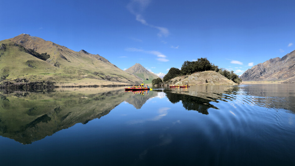 Take the journey into the Queenstown back country with our breath-taking kayak experience to the stunning Moke Lake. Located just 20 minutes from Queenstown, this quiet and peaceful setting allows you to escape the hustle and bustle of town and immerse yourself in a beautiful rural New Zealand environment surrounded by mountains.