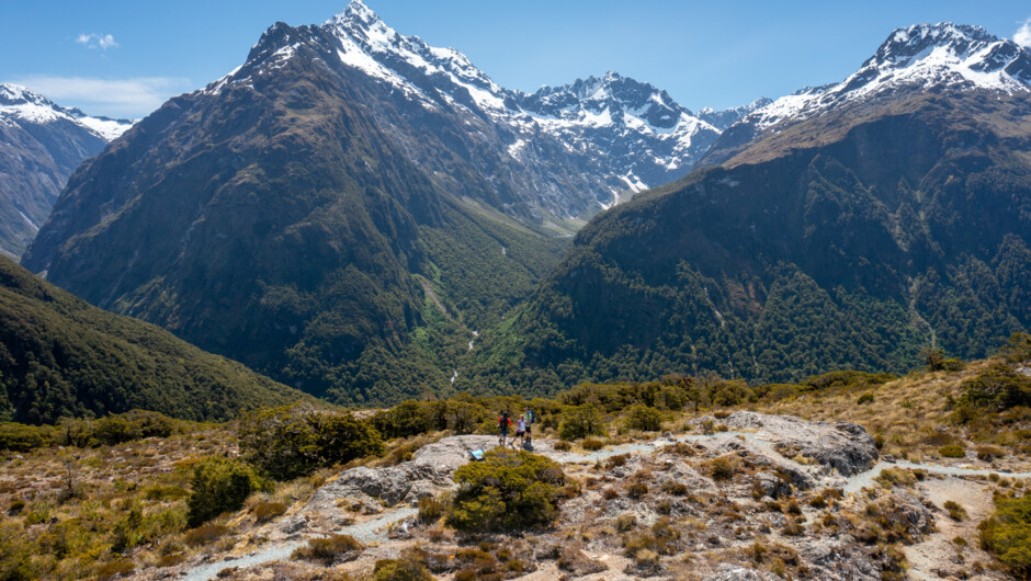 Enjoy a guided day walk from Te Anau to Key Summit on the renowned Routeburn Track, a New Zealand Great Walk. Ascend through lush forest to an alpine environment with panoramic views for an incredible hiking experience.