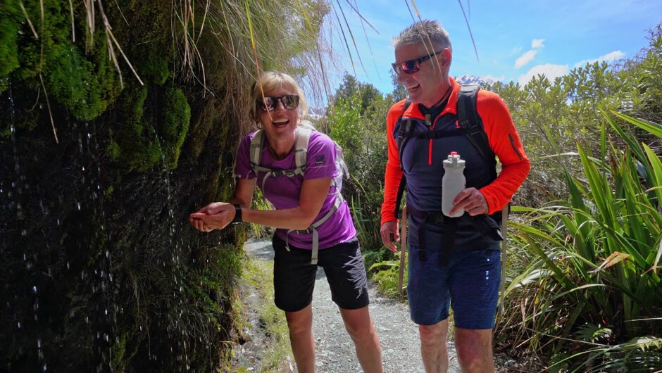 Begin the journey with a spectacular scenic drive along the Milford Road to the main mountain Divide. The walk ascends through lush, temperate rainforest on a well maintained track. The steady climb takes approximately 2 hours at a leisurely pace. Your small group, accompanied by a local, knowledgeable, Trips & Tramps guide provides an excellent opportunity to learn about the natural and human heritage of Fiordland. Gaining an elevation of 400 metres, emerge from the forest into the alpine environment, with panoramic view of high snowy peaks, alpine lakes, and deep bush clad valleys. On a fine day lunch is on the summit amidst the alpine tarns, and in unfavourable conditions in the shelter of a nearby tramping shelter.