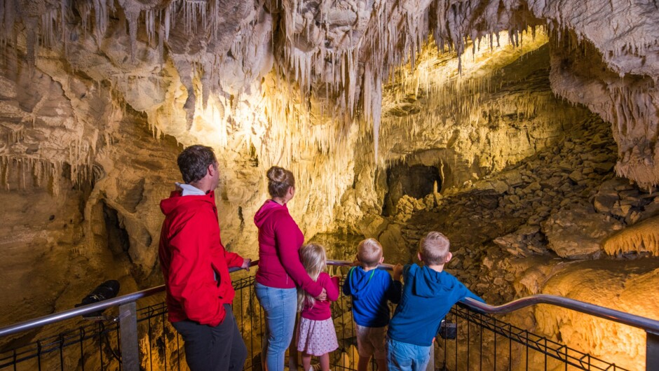 Ruakuri Cave offers a captivating blend of Waitomo's most compelling subterranean experiences. Journey down through the spectacular spiral entrance, and marvel at the softly folding shawl-like limestone formations and crystal tapestries. Hear the distant thunder of the subterranean waterfalls and get up close to the glowworms. Ruakuri Cave is New Zealand's longest guided underground walking tour and an experience that must be seen to be believed. It will leave you open-mouthed, awe-struck and humbled by the sheer majesty of nature. With clever and innovative design, Ruakuri Cave has full wheelchair and pushchair access.