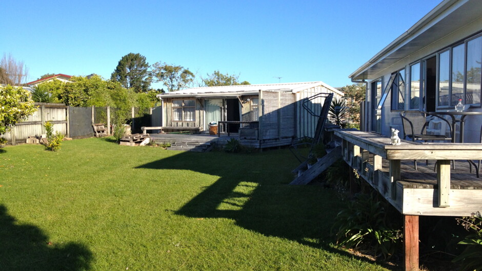A fantastic section for a friendly game of backyard cricket. Plus, this space offers ample boat parking - ideal for the keen fisherman and boatie. Upon return from days at the beach an outdoor shower is waiting to help wash off the sweat and sand. Sleeping up to 6 guests, this Cooks Beach accommodation offers three bedrooms, the master bedroom is fitted with a Queen bed, bedroom 2 with a double bunk set plus one single bed, and bedroom 3 has one single and one trundle bed. Bedroom 2 also opens out onto the deck. There are plenty of books available; as well as puzzles and games to keep the family occupied during any indoor days. For a low-key holiday with an excellent location; head to Cooks Beach and enjoy Silver Sands.