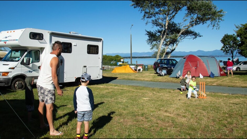 Our beautiful park is set in 54 acres adjacent to Nelson's famous Tāhunanui Beach and large recreational reserve which includes Natureland Zoo, BMX track, tennis courts, roller rink, hydro-slide, bumper boats and Prokarts. Our powered and non-powered campsites are located in five separate colour-coded zones, with various features and facilities to suit your needs. On-site café, mini golf, pedal karts, 5 playgrounds, mega bouncer, mega swing, flying fox, kitchen/bathroom/laundry blocks, TV lounges, and multi-room function centre. Our Park is also bike-friendly (and bike-packer friendly), meaning there is secure bike storage, bike transport shuttle service to all trails, a bike maintenance hub plus on-site mountain and trail bike hire.