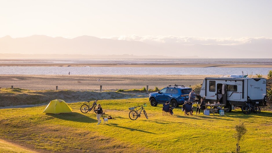 Beside the beach camping, just 5km from downtown Nelson. From tents to campervans, 600 campsites spread across 54 acres of parkland. Four-legged guests are welcome in a dedicated pet-friendly zone, from 1 February to 30 November each year.