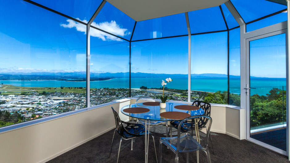 Stunning hill-top location giving all day sun & non-stop views. The stunning views of Tasman Bay can be enjoyed from all levels in this home. A beautiful, calm home to relax in, ideal for an executive family.