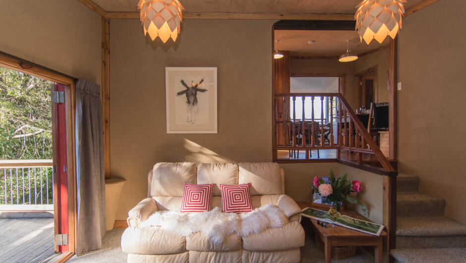 Guests describe it as 'a dream'. Located on your own private native forest, surrounded by birdlife with walks to waterfalls on your doorstep. The three bedroom home is set on three levels, up high in the tree tops, with views all the way to the sea.