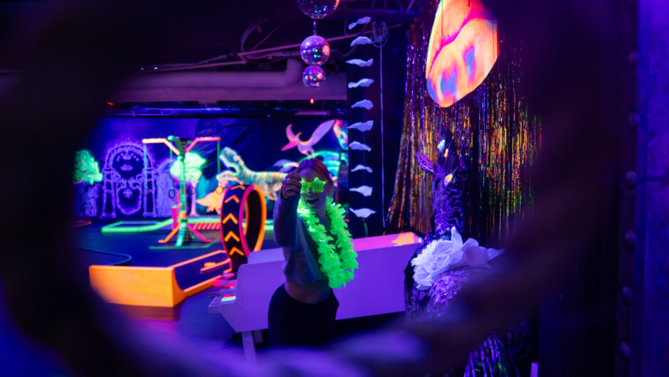 Challenge your friends, family, or even yourself at Putt'N'Glow, our exciting indoor UV mini golf course.