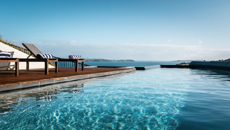 Spoil yourself and stay in this new luxury apartment, just 5 minutes from the passenger ferry terminal at Matiatia. Fitted to the highest standard of finishes, with stone floors, a kitchenette with oven and dishwasher, a monsoon shower, and its own laundry with washer/dryer. The bedroom has amazing views to Rangitoto, a sumptuous queen bed with quality linen, a desk, and flat screen TV with Sky. Bi-folds in the lounge open out onto a private outdoor area, where you can simply sit back and take in the breath-taking 270 degree sea views and peaceful rural surroundings or access the stunning 15m pool and spa.
