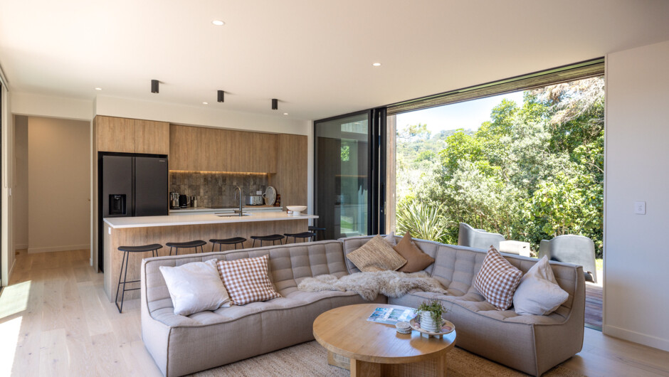 A brand new family beach house, set just back from the golden sands of Onetangi beach. Sleeps up to 6 guests in 3 bedrooms.