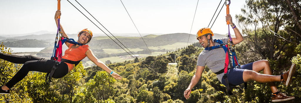 On Waiheke Island, you'll zip over a working vineyard and treetop canopies 700 years old. On The Coromandel, you’ll reach the start via New Zealand’s only mountain railway (a 15-minute ride). And in Rotorua, you’ll soar over waterfalls while diving into Māori history.