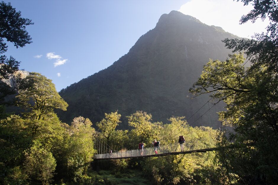 Milford Track is arguably New Zealand’s most famous walk. The 53 km journey begins at the head of Lake Te Anau and leads you across suspension bridges, boardwalks and a mountain pass. You'll pass pristine lakes, towering mountains, enormous valleys and feel the misty breath of New Zealand's tallest waterfall. If you're walking independently, be sure to pre-book DOC(opens in new window) huts as space is limited in peak season. Guided tours offer separate accommodation, but should also be booked well in advance.