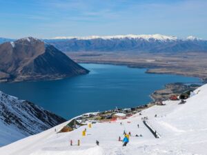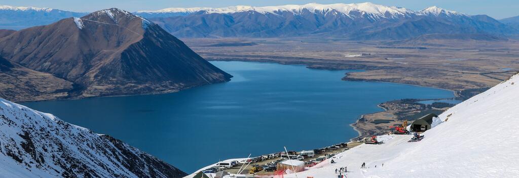 The village is surrounded by mountains and water, with the highest of the Southern Alps including Mount Cook visible on a clear day. The views are even more impressive from up the hill at Ōhau Snow Fields, a small ski field providing a wonderful community atmosphere along with all the essential services including rental, lessons, a chairlift and day lodge/cafeteria.