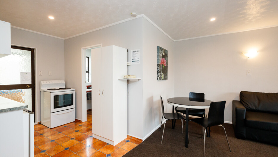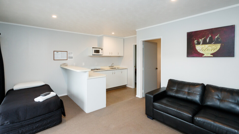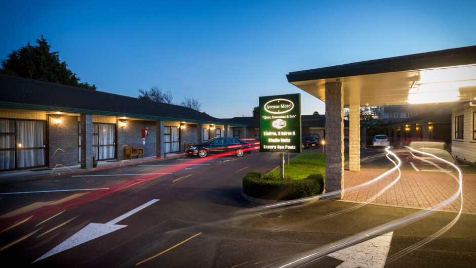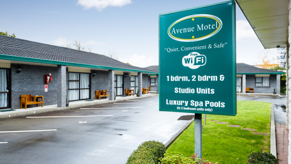 Avenue Motel is comprised of 13 ground floor units. Units are serviced daily, there are five studio units (sleep 1-3), five one bedroom units (sleep 1-4) and three two bedroom units with in-room spa pool (sleep 1-5). Eight units have a full kitchen and five have tea, coffee, toast making facilities, fridge and shower. Phone, Sky TV, DVD, in each unit. All have Queen or King size beds.