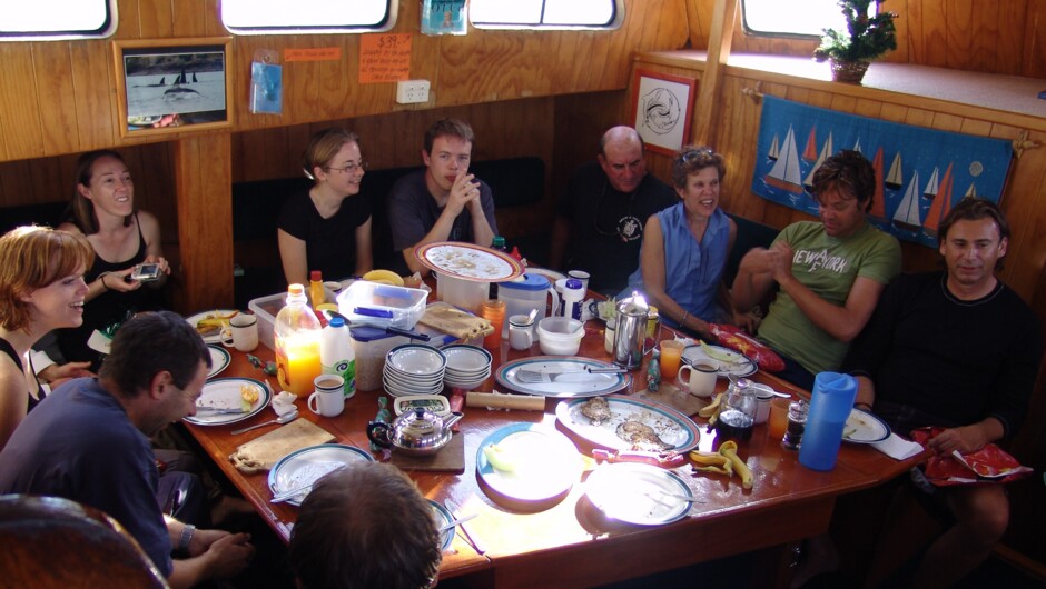 Accommodation is in private double cabins and dorm style bunk rooms.