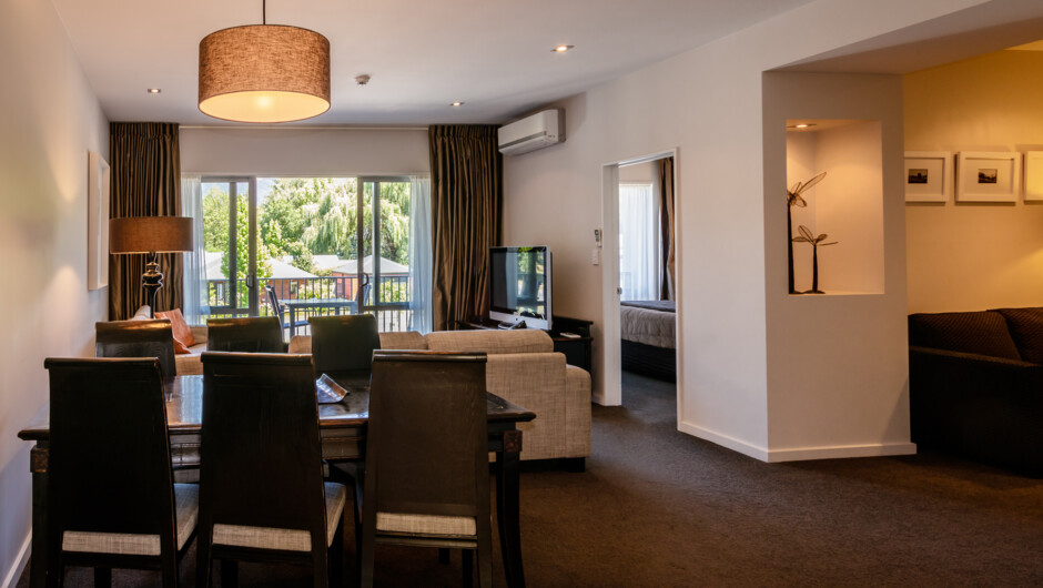The spacious 100 square metre suites have their own balcony and open plan kitchen, laundry, dining, lounge, office, two large bedrooms, bathroom and separate toilet. The 13 suites are located over three levels, with upper levels accessed by elevator or stairs. Eleven suites have a double deluxe spa bath and 2 access suites have walk-in showers.