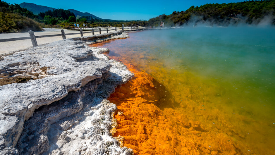 Being an active geothermal area with uneven terrain, sturdy footwear is recommended. Jandals, sandals, flip-flops or high heeled shoes are not suitable. You must be able to climb and descend stairs and walk on unpaved or uneven terrain. Easy and good fitness level required. Tours are suitable for people of all ages and average fitness.