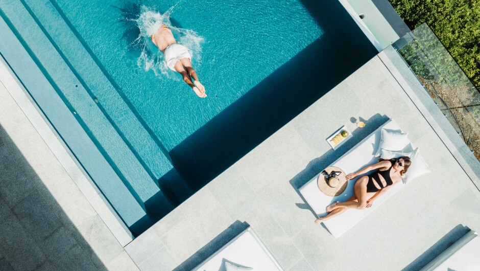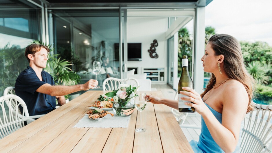 Designed and furnished in an eclectic international contemporary style, where gardens and lodgings blend into the natural topography and foliage. Four of the five world class villas offers its own private heated horizon edged lap pool, all offering private Jacuzzis, air conditioning, original artworks, Ecostore amenities and fully equipped gourmet kitchens. Our team of talented resident personal chefs can spoil you for the evening. They will offer a specially designed menu of your choice featuring freshly caught fish, venison, lamb, crayfish (lobster) and more. Eagles Nest personal chefs will prepare this meal in your own private villa. Giving you the opportunity to take in the breathtaking views, with a superb glass of New Zealand wine.