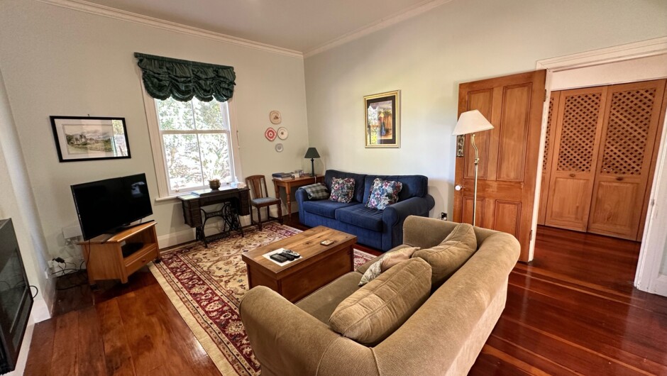 Located on a large fenced section, the property provides relaxed and private stays for guests. The cottage has a queen sized bed in one bedroom and twin king single beds in the other (and a double fold-out sofa bed in the lounge). Bathroom has a claw-foot bath, and also a shower. Gas heater in the lounge. A double carport. TV (including SKY). The cottage is fully self-contained. Continental breakfast provisions are provided for the first morning of your stay. The cottage is situated on the main road (State Highway 53, Kitchener Street) in from Featherston, approximately ten minutes walk from The Square in the middle of Martinborough and is within walking distance of wineries.