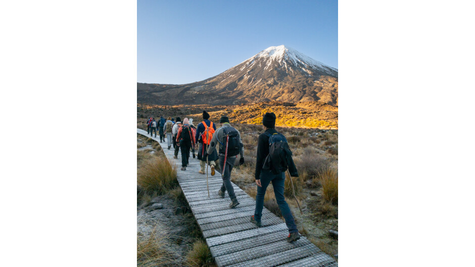 Experience the majestic Tongariro National Park as you follow your expert guide across the Tongariro Alpine Crossing for a view of the volcanic landscape during this 4-hour trek. Mt. Ngauruhoe’s cold water springs create a small oasis of lush yellow mountain buttercups and white foxgloves, and the pure Soda Springs allows us to refill our water bottles with Tongariro pure spring water, whilst having morning tea. Here we will talk and show you all things relevant to Tongariro and New Zealand including recent and past eruptions, geology, flora and fauna discovery and settlement of New Zealand. At Soda Springs there may be the option to upgrade to the full day walk if conditions and logistics allow. No outdoor experience is necessary.