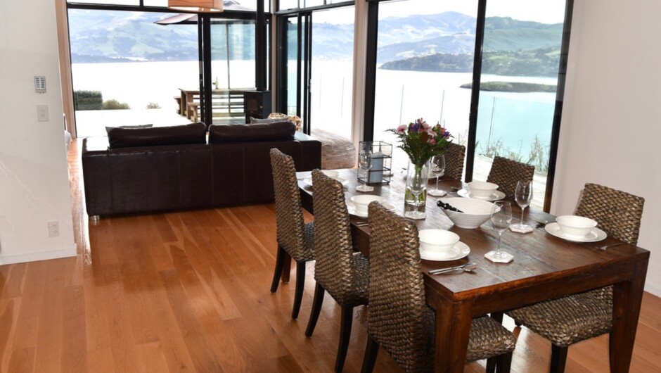 Located in Takamatua, this stunning holiday home includes modern open-plan living. The floor-to-ceiling glass captures beautiful views no matter the weather, with a wood-burning fireplace to keep you cosy during those cooler stays. For warmer weather, make the most of the fantastic indoor-outdoor flow with generous decking to dine al fresco, or simply soak up the scenery. Special touches include a Nespresso machine to ensure your daily fix is catered for and an outdoor bath for the ultimate relaxation.