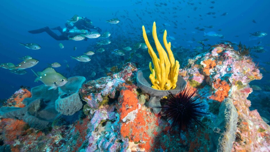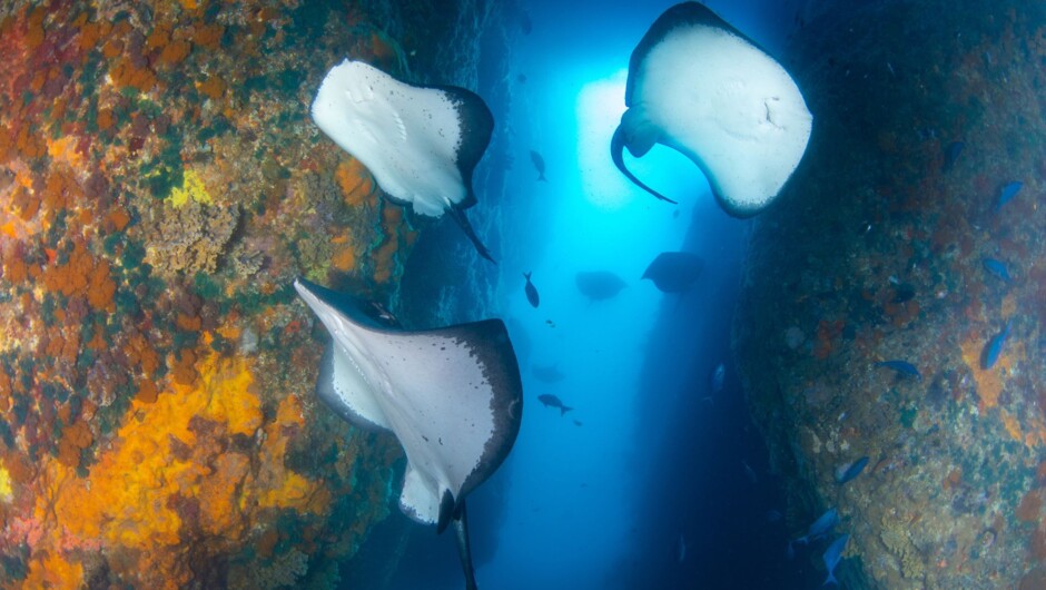 The Poor Knights Islands Marine Reserve, located 1 hour off the coast of New Zealand are renowned for their stunning marine life & beautiful clear water. You'll get to experience two spectacular dives or a days snorkelling in an environment that will take your breath away. But that's not all. Don't forget about the tour around the islands which we do during your surface interval between the two dives where you'll visit the largest sea cave in the southern hemisphere & so much more. And when you're done with all that? Sit back, relax and enjoy a day out on the water. Our passionate crew will look after you no matter what level of diver you are. We provide rental gear for those who need it, wetsuits & hot showers so that you can stay warm.
