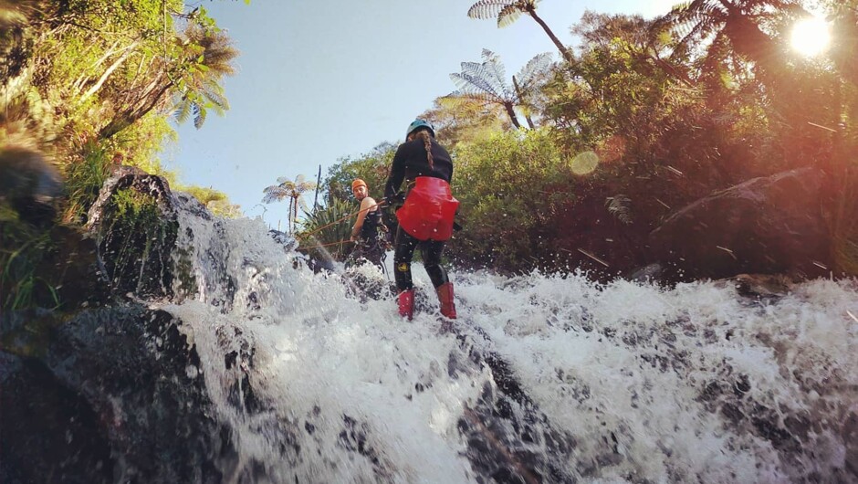 Challenge yourself to scramble, rock climb and abseil the cascading waterfalls all whilst experiencing the magic the canyon has to offer. The ancient lava flow is surrounded by native bush and natural beauty. Following your experienced and passionate guide, you will navigate your way through many obstacles, including waterfalls, pools and boulders, ensuring that your adrenaline levels are high. All of the guides are qualified, friendly, professional and highly experienced, guaranteeing you will always feel safe and comfortable. Throughout the trip, the guide will explain to you facts about the flora, fauna and history of the area.