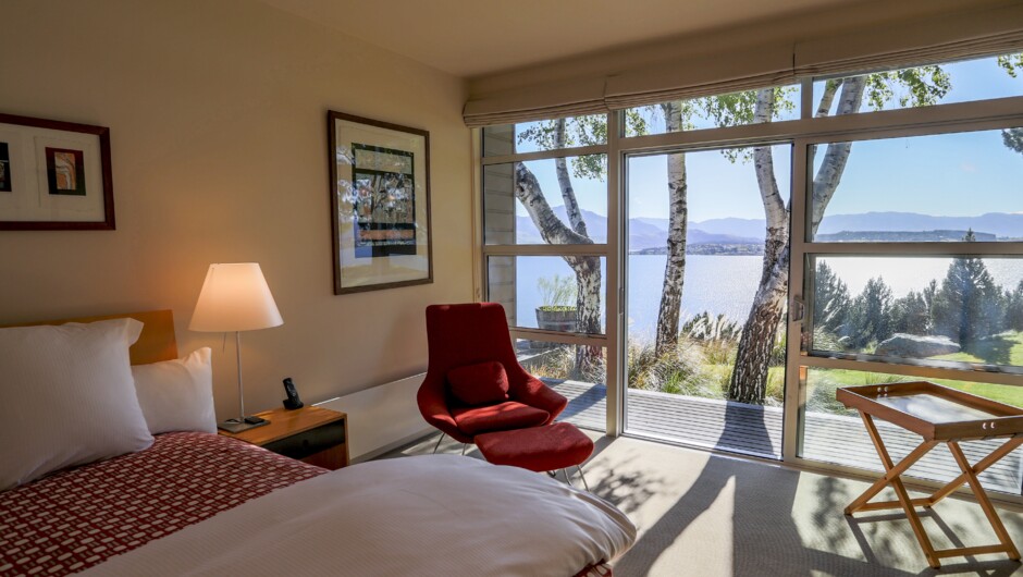 Strikingly designed in timber and glass, Whare Kea appears to float on the edge of Lake Wanaka against the dramatic backdrop of the Southern Alps.